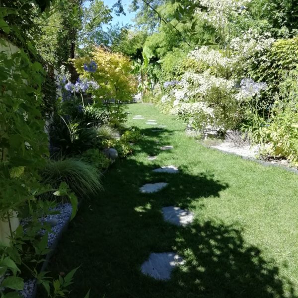 La transition entre la terrasse et le jardin à été conçue par Pierre a partir de quelques indications de notre part et le résultat dépasse nos attentes. C’est magnifique.